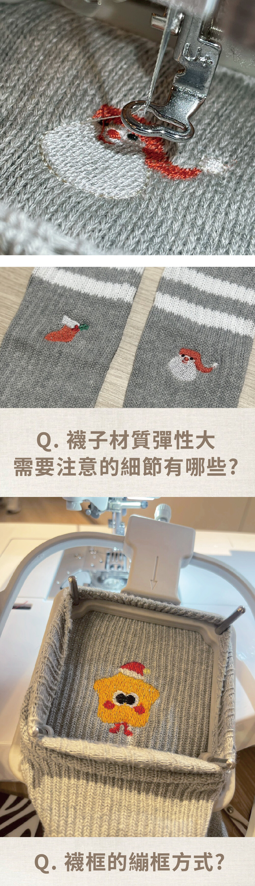 利用刺繡機在襪子上刺繡聖誕節專屬圖案或文字