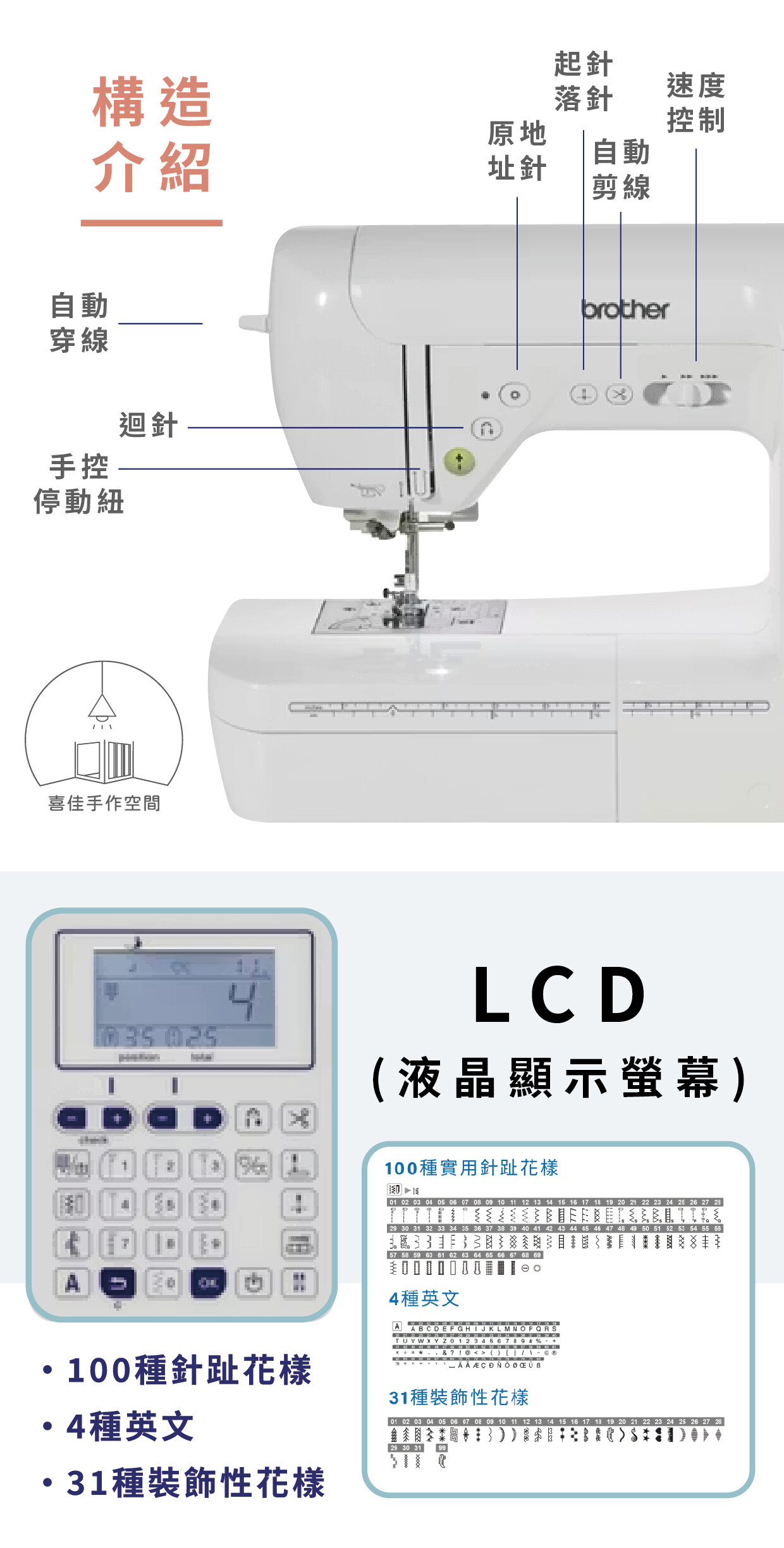 -內建540種縫紉針趾(包含字母)。